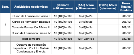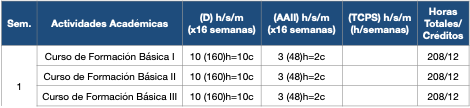 Primer Semestre: Cursos de Formación Básica y Optativos de Formación Específica (Anexo A en el Plan de Estudios) El estudiante deberá cursas cuatro asignaturas de formación básica como parte del tronco común del programa de MCL.